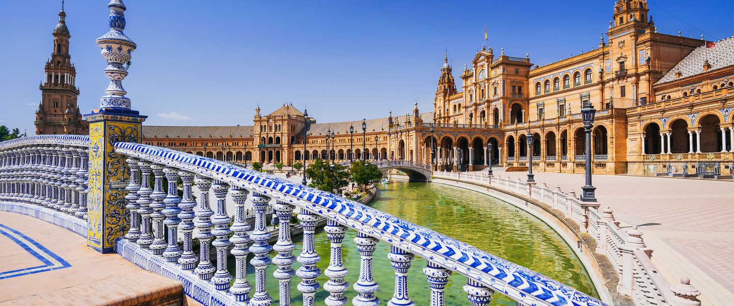 Die Plaza de España ist ein weiteres herausragendes Wahrzeichen der Stadt, das für seine beeindruckende halbkreisförmige Architektur und die schönen Keramiken bekannt ist. Der Platz wurde für die Ibero-Amerikanische Ausstellung von 1929 erbaut und ist ein beliebter Ort für Spaziergänge und Fotos.